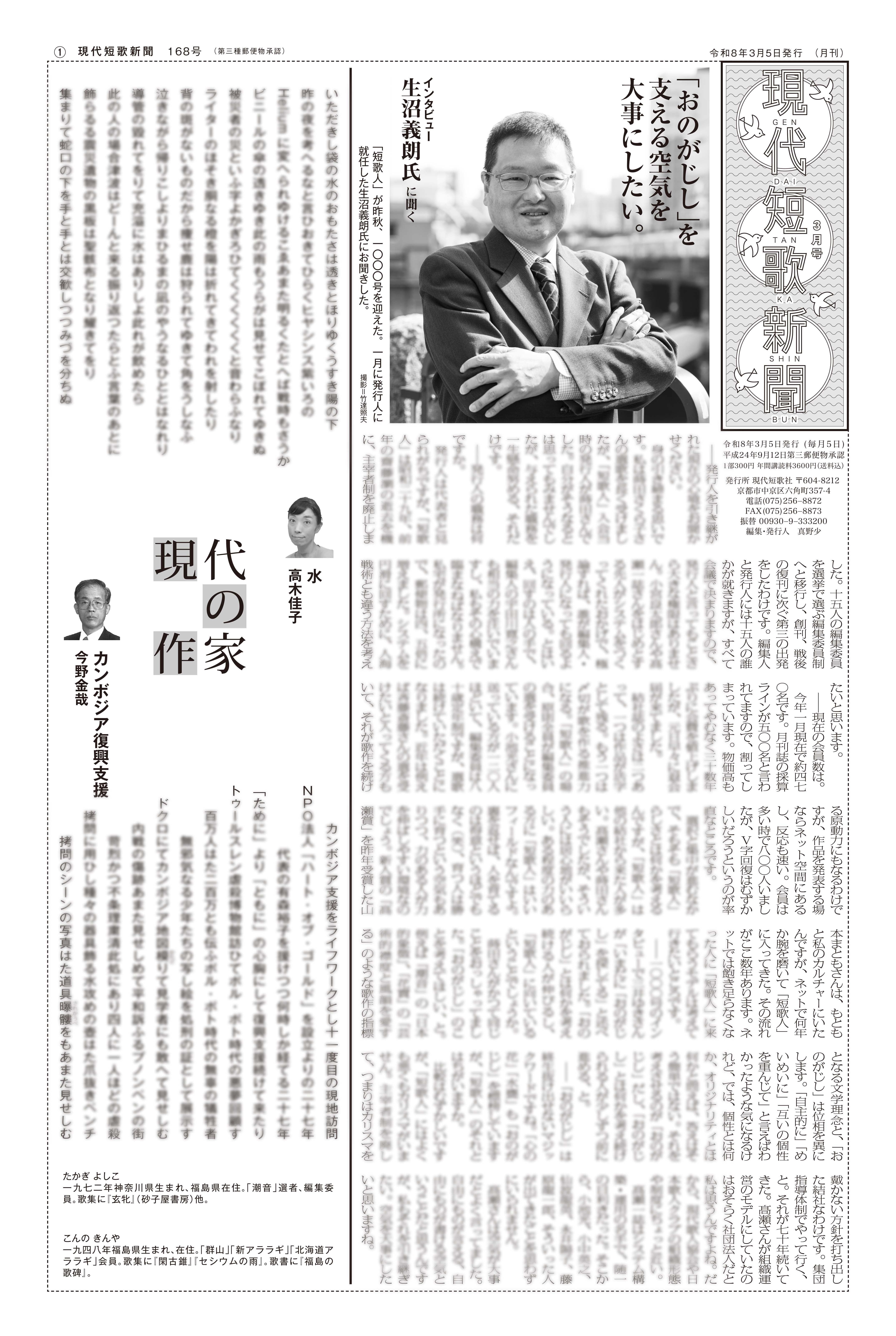 現代短歌新聞2026年3月/168号